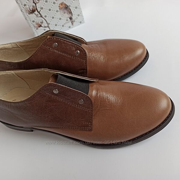 Кожаные коричневые туфли ari andano на резинке 37 размера 24-24,5 см