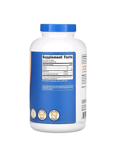 Подробное описание: Nutricost CLA КЛК 800 мг - 240 капсул / США, жиросжигатель