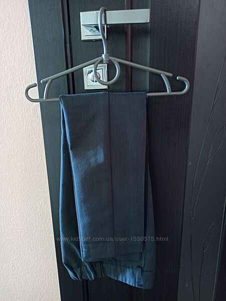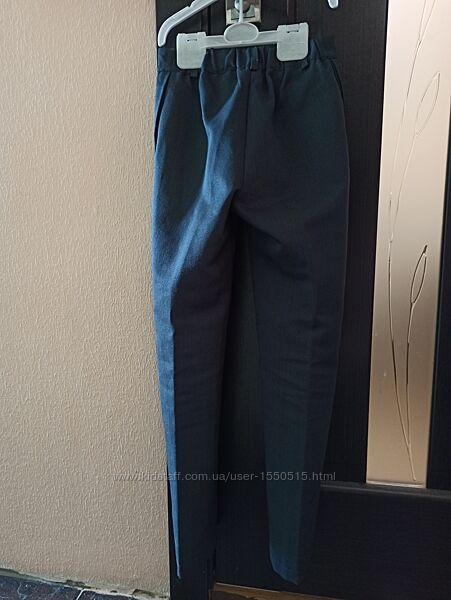 Классические серые брюки с резинкой на поясе и двумя боковыми карманами. Есть шлейки для ремня, с помощью которого можно регулировать штаны по ширине. Впереди модель декорирована застроченной стрелкой. Длина 78 см, по внутреннему шву 58 см, рост 128 см. Состав ткани полиэстер 100%. Без возврата.Другие объявления продавца