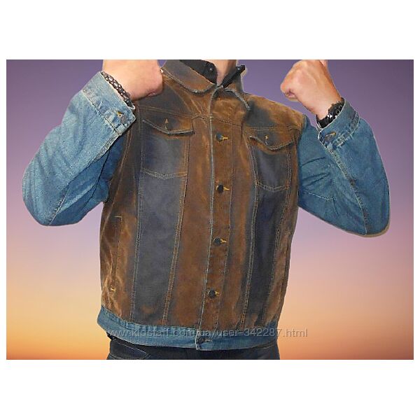 Размер евро 56. Новый(бирка стик) 100% средней плотности коттон.С винтажными (ржаво замшевыми)потёртостями. Фирменные болты. Качественный пошив. Европейский производитель.ДЛИНА ПО СПИНЕ ОТ ВОРОТА - 64см