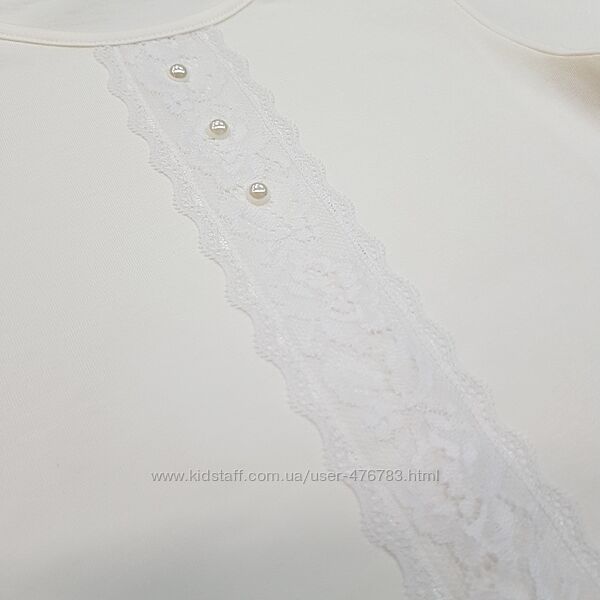 Нарядна блузка для дівчинки з мереживом. Рукав - 3/4.Колір: молочний