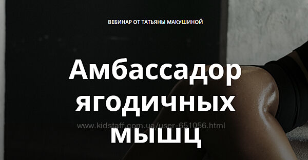 Амбассадор ягодичных мышц Татьяна МакушинаЗаписи готового материала отправляю на ваш имейл, вы можете смотреть онлайн или скачать себе.