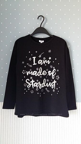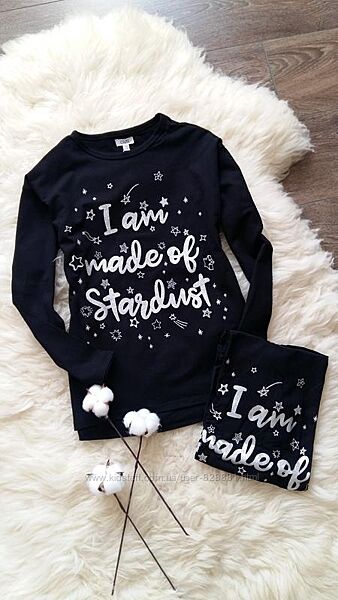 Классные черные регланы с серебристым принтом на девочек.Трикотаж эластичный, очень мягкий и приятный на ощупь.