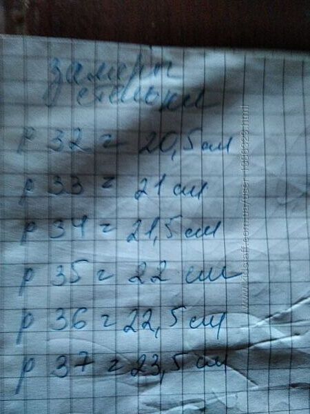 | Стелька (см) | 20, 20.5, 21, 21.5, 22, 22.5, 23.5 |