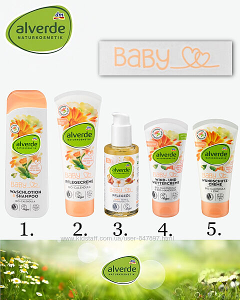 Подробное описание: Alverde Baby дитяча продукція в асортименті шампунь, крем, олійка, піна алв