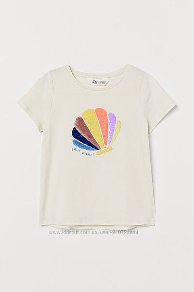 H&M Футболка с ракушкой из реверсных пайеток для 3-10 лет