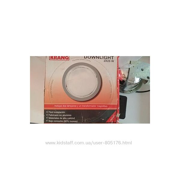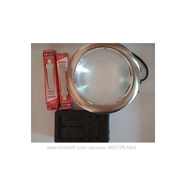 Вбудовуваний світильник круглої форми. Сучасне і економічне рішення освітлення. Завдяки високому ступеню яскравості і довговічності при експлуатації даний світильник відмінно підійде для офісів, будинків, магазинів і т.п. У комплекті трансформатор 230В і 2 лампочки PL по 26Ватт.Новий.Коробка трішки примята.