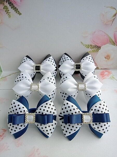 Стильные школьные бантики для модниц. Длина нижнего бантика 8 - 9 см. Основа - бесшовная нейлоновая резиночка отличного качества. В наличии. Цена указана под фото за пару.