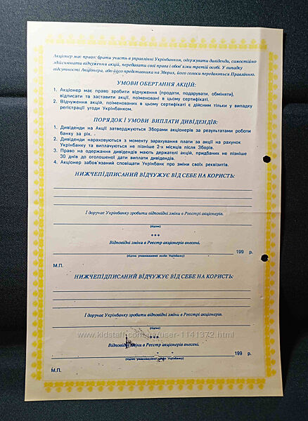 Продам «Сертифікат акцій» Укрінбанка на десять тисяч крб. 1993р.На фото все, що закреслено чорним на оригіналі нічого не закреслено.