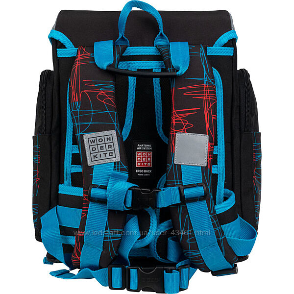 Рюкзак Kite SET_WK21-583S-4 снаружи:запатентованная ортопедическая спинка Ergo Back с мягкими дышащими подушечками повторяет природные изгибы спины;мягкие дышащие лямки S-образной формы снижают нагрузку на плечи;съемный нагрудный ремень фиксирует лямки и равномерно распределяет вес;съемный поясной ремень обеспечивает дополнительную поддержку и снижение нагрузки;удобный магнитный замок FIDLOCK застегивается одним движением;2 боковых кармана на молнии для бутылочки с водой или небольшого термоса;2 боковых кармана для мелочей;эргономичная прорезиненная ручка-переноска;текстильная ручка-петля;уплотненное прорезиненное PU дно с пластиковыми ножками – устойчивое и легко моется;светоотражающие элементы с 4 сторон – чтобы ребенка было видно в темное время суток;надежная фурнитура – молнии работают плавно, пуллеры с резиновым напылением; магнитный замок FIDLOCK.декор: принт, объемный PU-бейдж «машинка», объемный раббер бейдж Wonder Kite.Рюкзак Kite SET_WK21-583S-4 внутри:1 вместительное отделение;объемный фронтальный карман, внутри которого – удобная съемная ключница;внутренняя система разделителей с фиксирующей резинкой – для тетрадей и книг;карман для планшета с мягким плюшем внутри;плюшевый карман на молнии для телефона – защищает от царапин;внутренний карман на молнии для мелочей;прозрачный кармашек для расписания;поле для персональных данных владельца;иконки внутренней навигации, подсказывающие предназначение каждого кармана;прочная брендированная подкладка голубого цвета.