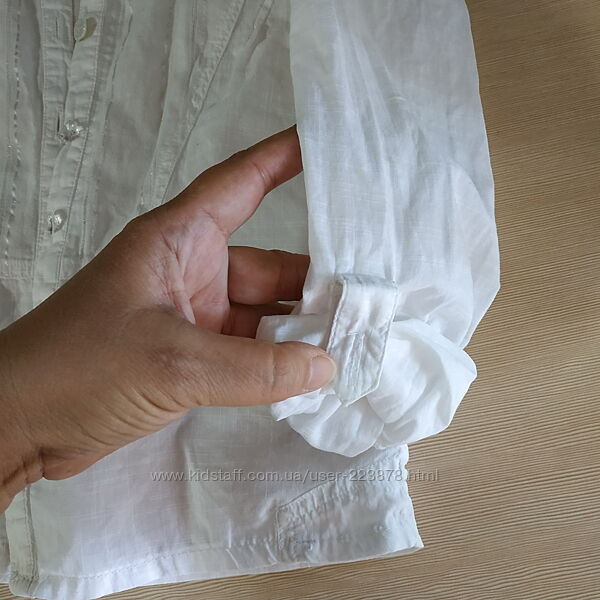 Рукавчики можна закотити і застібнути на хлястики (гудзиків немає).