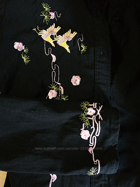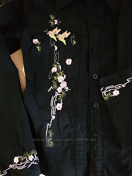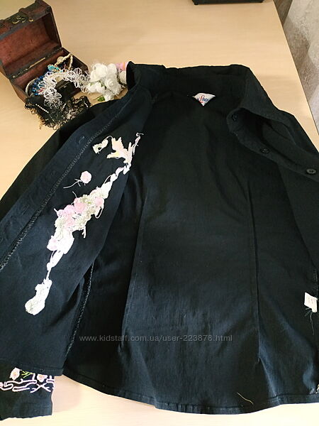 Шикарна котонова рубашка з вишивкою для дівчинки 8-11 років.Дуже класно виглядає на дитині. Стрейчева, приталена.