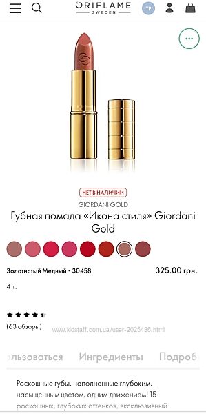 Подробное описание: Губная помада Икона стиля Giordani Gold 30458 золотистый медный Орифлейм