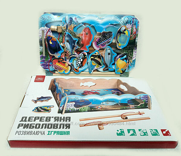 Увлекательная деревянная игра «Рыбалка» С 39339 обязательно порадует малыша и увлечет ребенка надолго.Смысл игры состоит в вылавливании морских обитателей из имитированного водоема. За счет магнита, установленного на крючке удочки, и магнитиков на каждой фигурке, их легко можно будет поймать и вытащить.