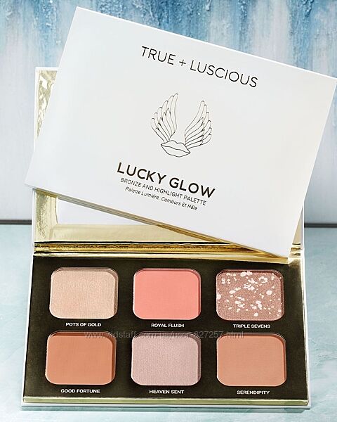 В палетку True + Luscious Lucky Glow Palette вошли 3 хайлайтера, 2 бронзера и румяна: