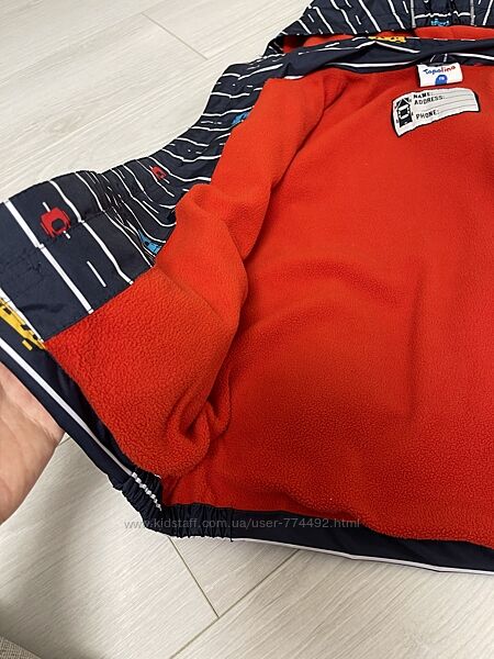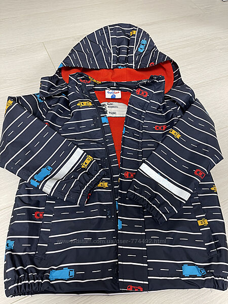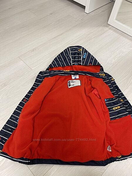 Курточка ветро водо непроницаемая демесезонная Topolino р.116, спинка и капюшон утеплены лёгким флисом. Не парящая, легкая, ткань не дубовая, средней жёсткости. Есть светоотражающие элементы. Капюшон не съемный. В новом состоянии, вообще без следов носки, одета пару раз, переросли. Длина по спинке 48 см, ширина под грудью 40 см, плечи 32 см, рукав 41 см.Цена символическая, носим такие курточки все детство, они идеальны)