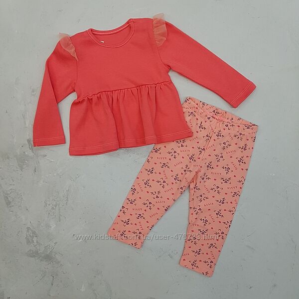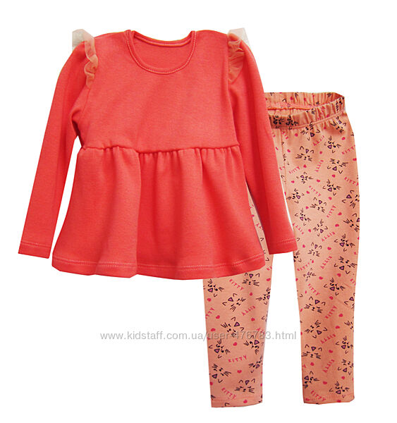Комплект трикотажний для дівчаток. Складається з ніжної кофтинки, прикрашеної крильцями з фатіну на плечах, і лосин.Склад: 95% бавовна, 5% еластан.