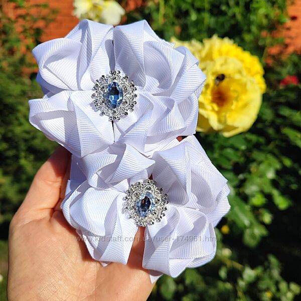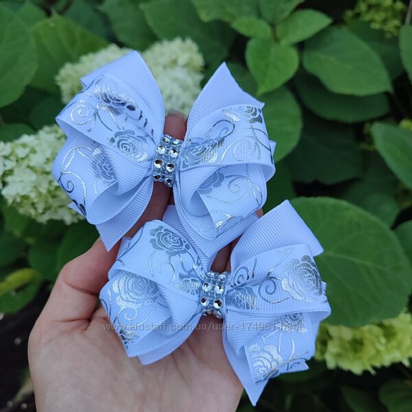 Білі бантики шкільні заколки обручі резинки 1 вересня сірі