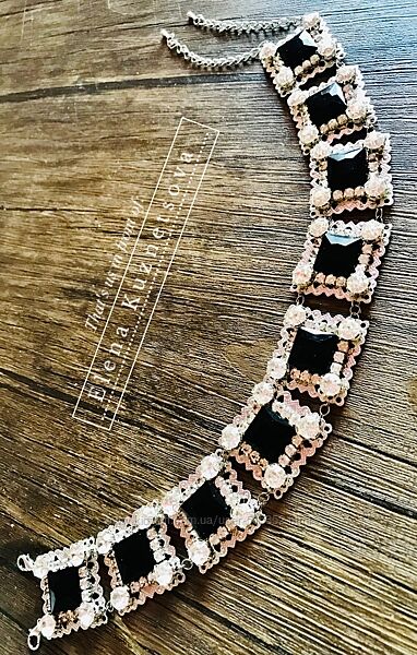 Стильный чокер с чёрными и белыми стеклянными стразами. Ширина 3 см. длина 28 см + 7 см цепочка для удлинения. Ручная работа.Другие объявления продавца