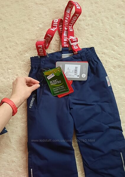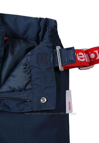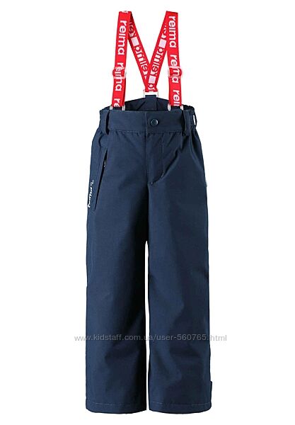 Непромокаемые Зимние брюки штаны Reima Tec Loikka темно-синие с красными подтяжкамиРазмеры в наличии: