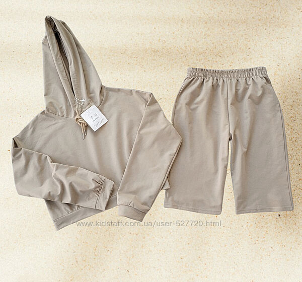 Модный костюм-двойка: велосипедки +худи выполнен из приятного трикотажного материала. Худи укороченное, свободного кроя, капюшон регулируется шнурком. Велосипедки на широкой резинке.Материал: трикотаж