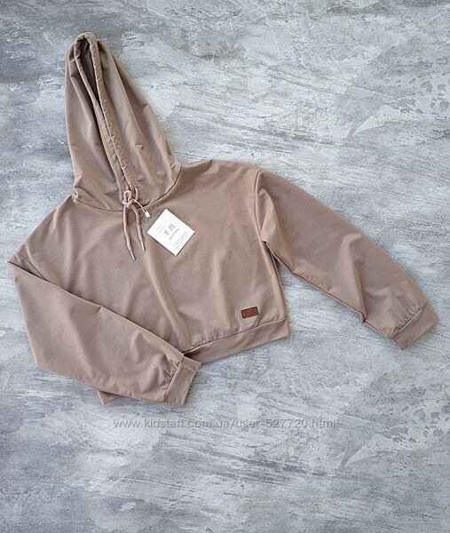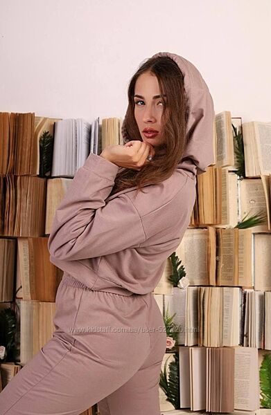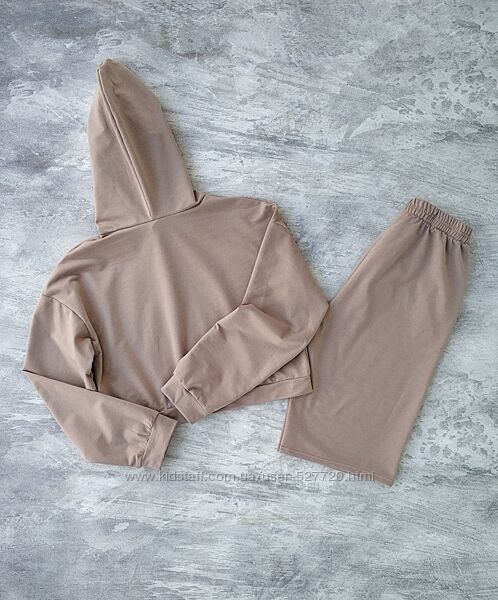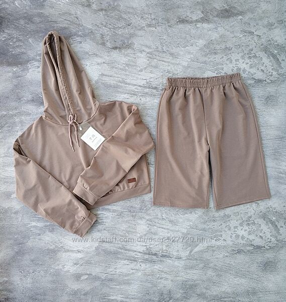 Модный костюм-двойка: велосипедки +худи выполнен из приятного трикотажного материала. Худи укороченное, свободного кроя, капюшонрегулируется шнурком. Велосипедки на широкой резинке.