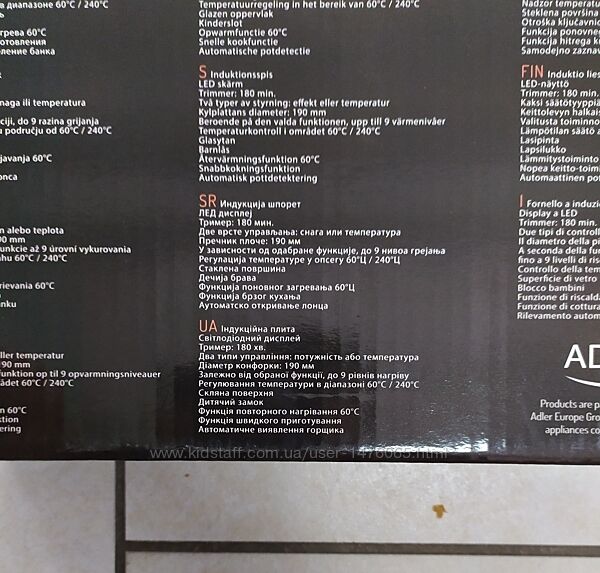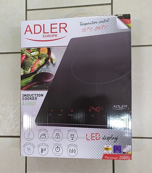 Привезенная из Европы новая надежная индукционная плита Adler AD6513. Мощность потребления (макс.) - 2000 Вт, электронное сенсорное управление, индикация времени и параметров работы на светодиодном экране, 9 функций готовки, 3-часовой таймер, два типа управления: мощность либо температура, диаметр рабочей зоны - 19 см, возможность регулировки температуры в диапазоне 60-240 градусов, замок от детей, функция повторного нагрева до 60 градусов, функция быстрого приготовления, автоопределение необходимой посуды, стеклокерамическая поверхность. Страна производства - Польша. Хорошее европейское качество. Предоставляется настоящая документированная гарантия - 6 месяцев.Оплата - наложенный платеж либо предоплата на карту. Способы доставки: самовывоз, Новая Почта, Укрпочта, Деливери, Justin (отправка 2 раза в неделю). Возврат товара – в течении 14 дней при сохранении упаковки и отсутствии следов его использования.