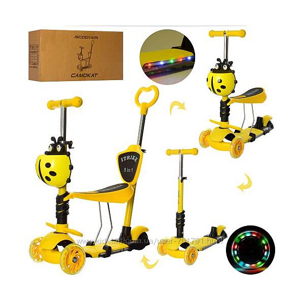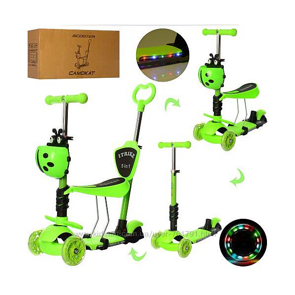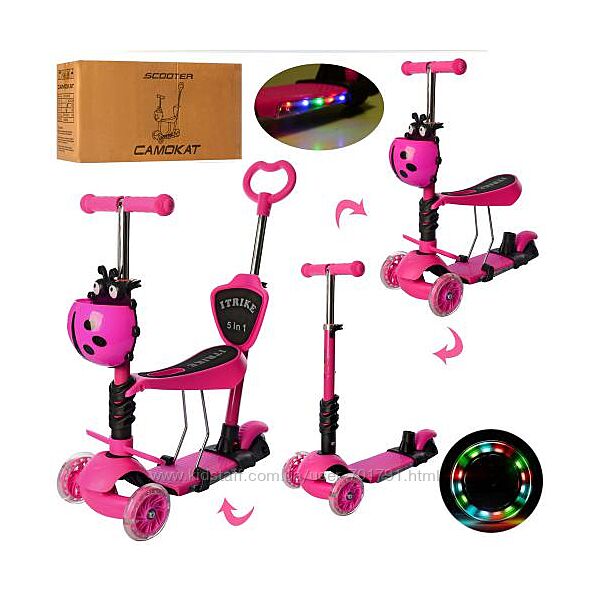 Самокат 5в1 беговел Itrike 3-077 с родительской ручкой