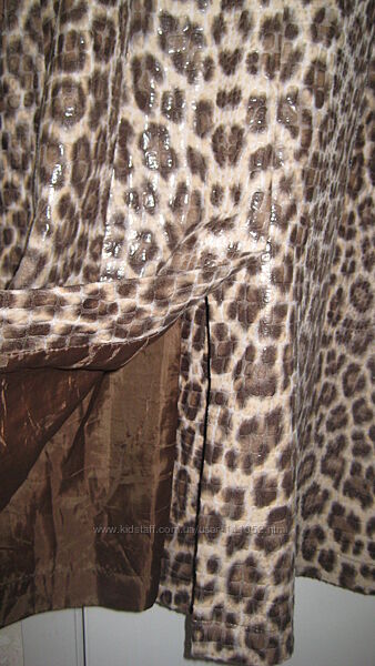 На подкладке с поясом. Размер 44. Сзади разрез.Качество отличное. К плащу есть такая же сумка - лаковая в леопарде.