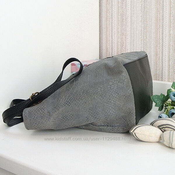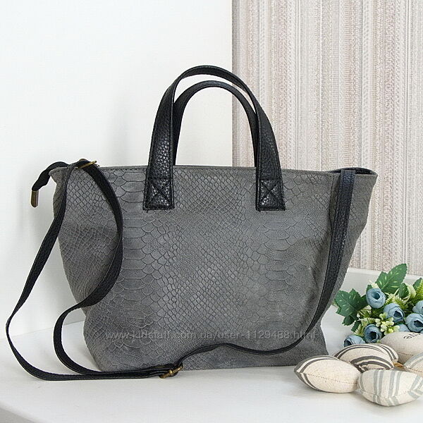 Сумка легкая, эффектная, вместительная. Изготовлена из мягкой натуральной кожи отличного качества с тиснением под рептилию и контрастной аппликацией. Закрывается на молнию, внутри одно отделение, в нем карман на молнии. Донце плотное. На бирке внутри указан состав и производитель.