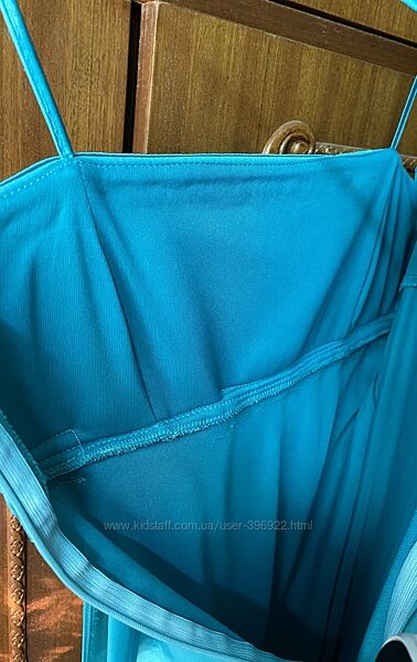 Сукня на тонких бретелях, що регулються. Можна носити без білизни - ліф ущільнений. Застібається збоку на потайну блискавку. Розмір 36 (S).