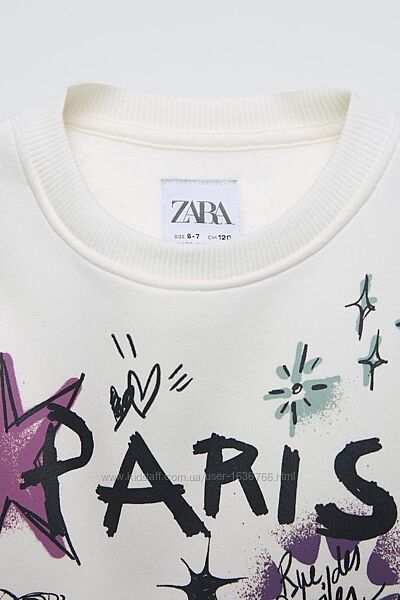 Утеплений світшот білого кольору з контрастним принтом в стилі графіті від бренду Zara в наявності в УкраїніДоступно до замовлення в розмірі