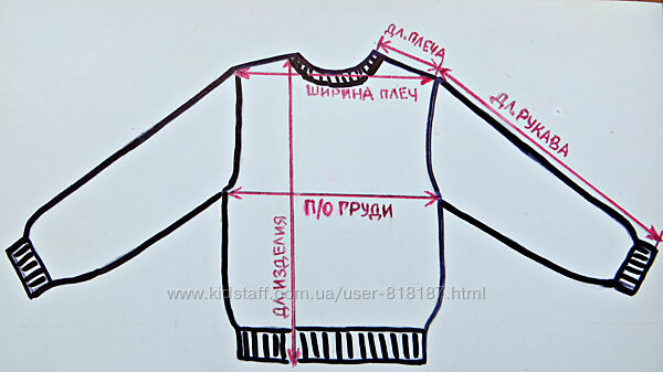 36 : Кофта: ширина плеч -37см., п/обх. груди - 42см., дл. плеча - 11см., дл.рукава -49см., дл.кофты - 50см.