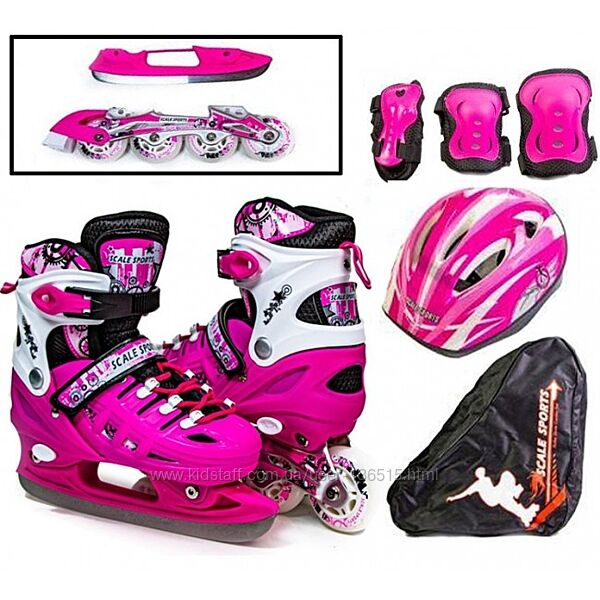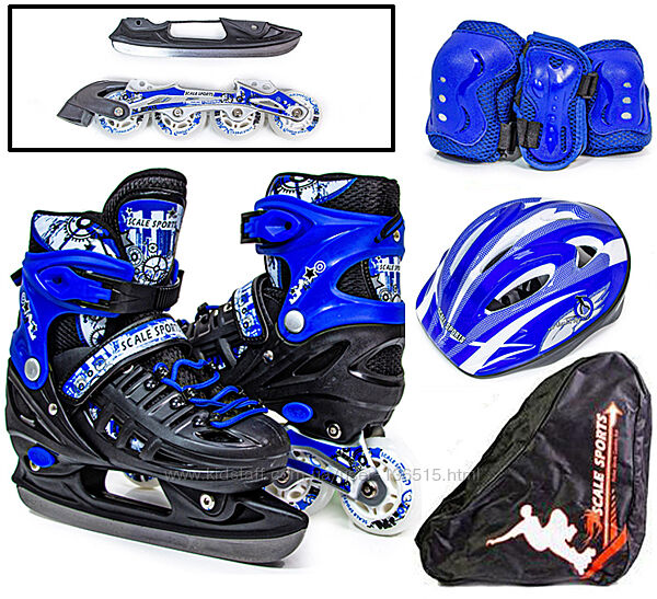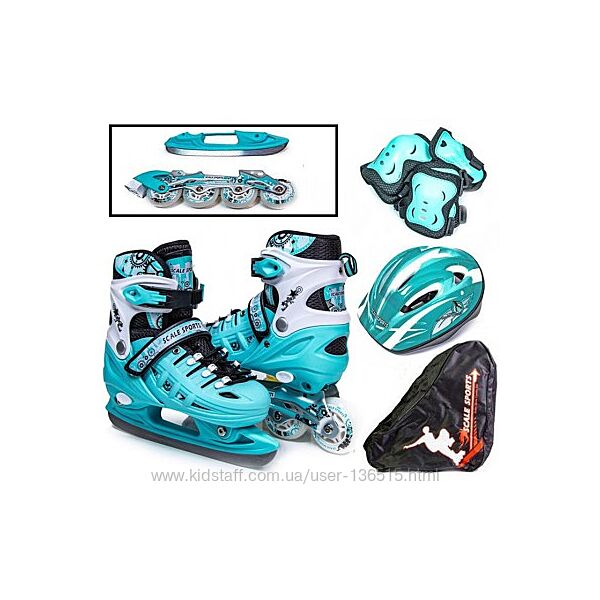 Подробное описание: Комплект ролики-коньки 2в1 Scale Sport с защитой и шлемом. 5 цветов