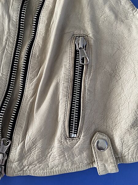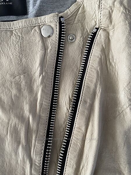 Стильная, мягкая кожа, внутри трикотажная подкладка. Все замки рабочие.Замеры: по плечам40, пог-48, пот-47, длина-46. Цвет айвори. Фото 9 ближе всего.
