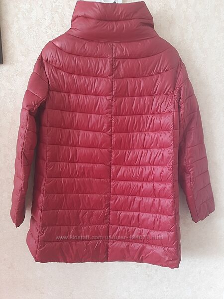 довжина від плеча 71 см, довжина по спинці 77 см, рукав від плеча (можна закатати і зробити коротше) 55 см, плече 11 см, висота коміра 11,5 см, напів обхват грудей 49,5 см, напів обхват талії 52 см, напів обхват стегон 57 см, ширина по низу 63 см