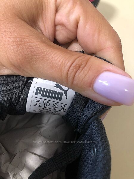 Фирменные серебристые логотипы Puma сбоку, на заднике и язычке.