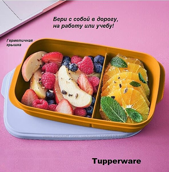 - Для здорового питания школьников и студентов вне дома компания Tupperware выпустила специальные ланч-боксы - контейнеры для пищи, предназначенные для транспортировки бутербродов или закусок. - В Ланч-боксах можно носить с собой питательную домашнюю еду, фрукты и овощи, поддерживая здоровый образ жизни, и не заменять полноценный обед чипсами, шоколадками и сухариками. - Благодаря компактной форме контейнер помещается в любую сумку или рюкзак.