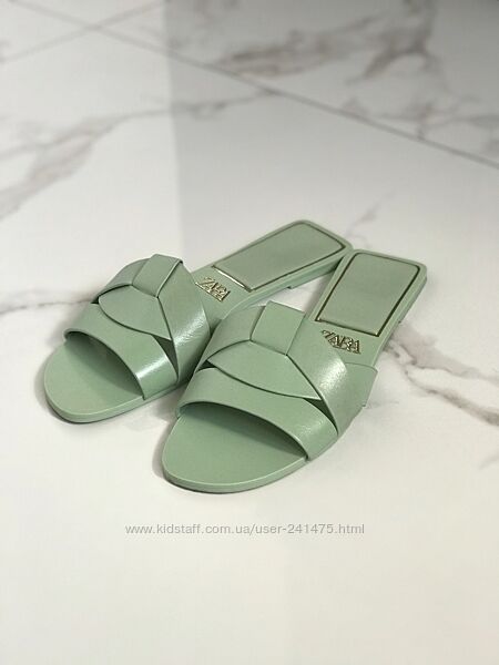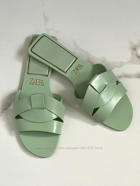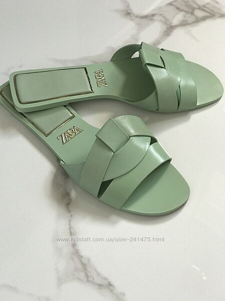 ZARA новая коллекция стильные мятные кожаные шлепки оригинал