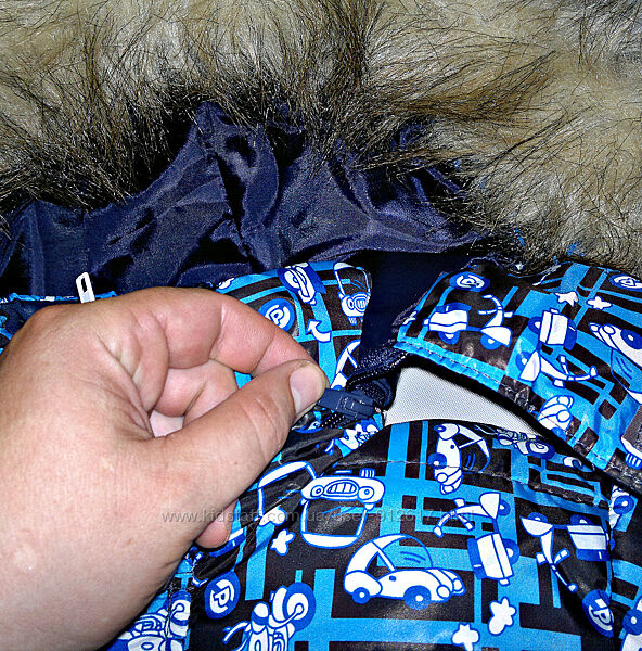 Капюшон на куртке отстёгивается и при необходимости с него можно снять опушку.Куртка застёгивается на длинную молнию, которая дополнительно закрыта ветрозащитной планкой на липучках.