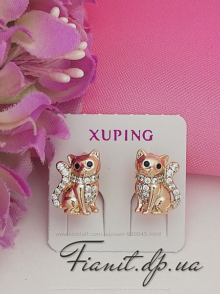 Серьги детские котики медицинское золото, медзолото.