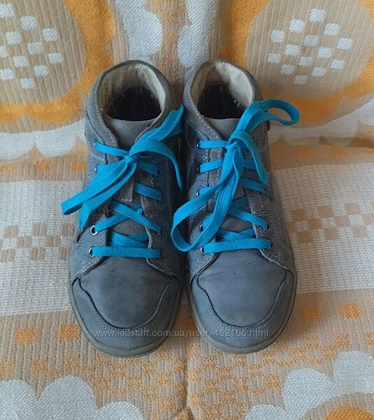 Классные фирменные ботинки, очень мягкие и удобные. Следы носки есть, незначительные, никаких дефектов нет. На фото без крема, просто вымыты. Верх кожа + замша, внутри кожа+текстиль.Размер указан 12,5 (соответствует европейскому 31), стелька 20,5см (не вынимается)