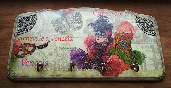 Настенная ключница на 4 крючка ручной работы выполнена в технике декупаж. По контуру слегка состарена, декорирована накладными металлическими элементами, в работе использованы акриловые лакокрасочные материалы на водной основе. Размер 34,5*18 см. Крепится на два подвеса. Наложенный платеж возможен при предоплате за доставку в двойном размере. Возврат не предусмотрен.