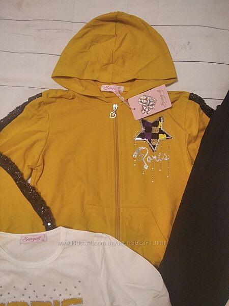 Костюм-тройка на рост 146Венгрия Seagull 52502Не утепленный. состав: коттон 60%, полиэстер 35%, эластан 5%. На бирках указаны размеры 12 лет, но маломерят, смотрите мерки: