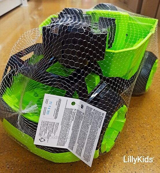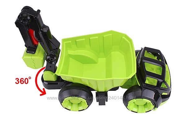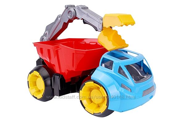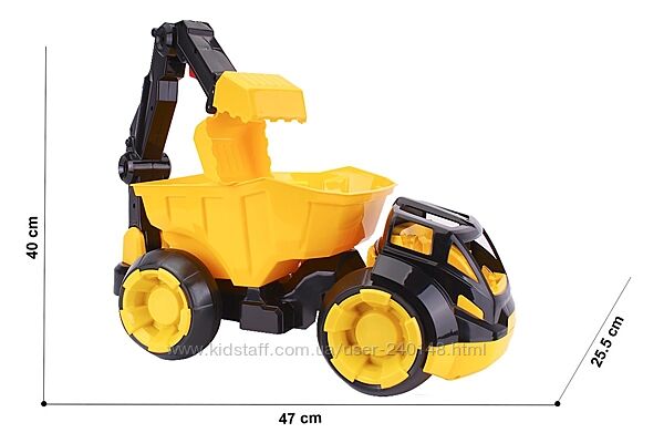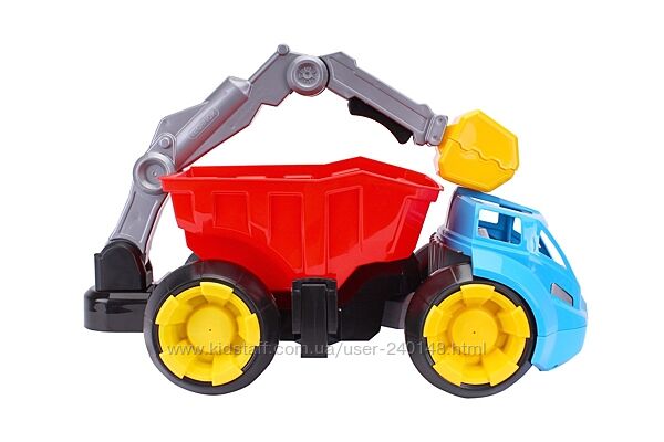 Об´єм кузова становить 3.0 дм3 й у ньому зручно перевозити пісок та каміння. Бокове вивантаження дозволяє використовувати іграшку на обмежених площадках.