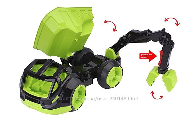 Завдяки маніпулятору завантаження піском або гравієм відбувається без допомоги екскаваторів та інших тракторів. Саме про таку машину мріють багато наших будівельних фірм! Маніпулятор обертається навколо своєї осі та рухається вверх-вниз. Ківш відкривається за допомогою кнопки на корпусі. Завдяки пружині стулки ковша міцно стискаються та надійно утримують пісок. З маніпулятором ігри з самоскидом стануть особливо цікавими.