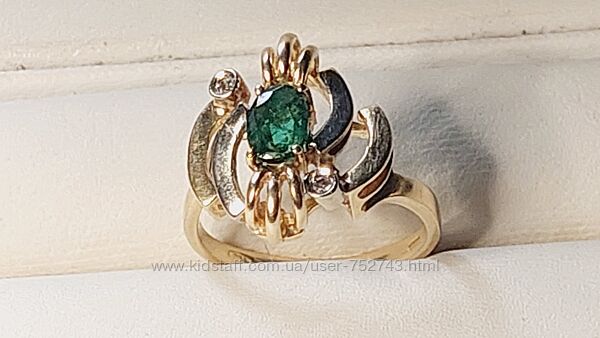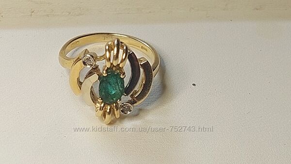Золотое кольцо 750проба с изумрудом и бриллиантами