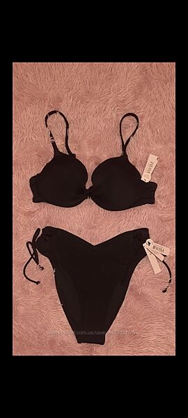 VICTORIA´S SECRET Swim Оригінал з оф.сайту США!Класична модель з формованою чашкою на кісточках. Чашка відкрита. Об´єм регулюється 3 положення гачком. Плавки Swim регулюються зав´язками.