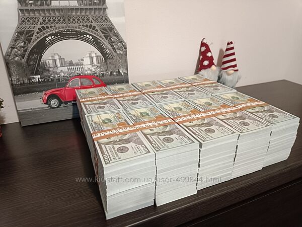 Миллион долларов в подарок - оригинальный подарок. Шикарных 100 пачек долларов по 75-80 купюр в пачке, номиналом в 100$ — сувенирных сто долларовых купюр. Комплектация подарка может быть купюрами старого или нового образца сто долларовых купюр. На всех сувенирных долларах, подарочных деньгах присутствуют информационные надписи (сувенир и не является платежным средством).Оригинальный и прикольный подарок миллион долларов.