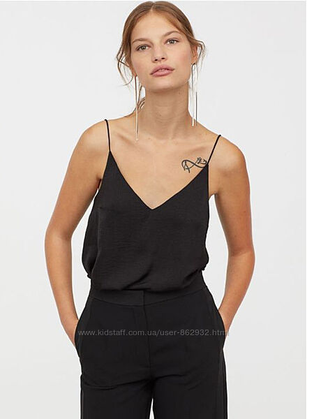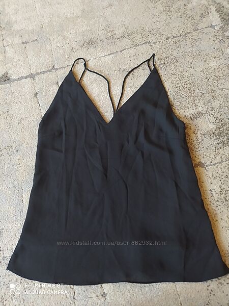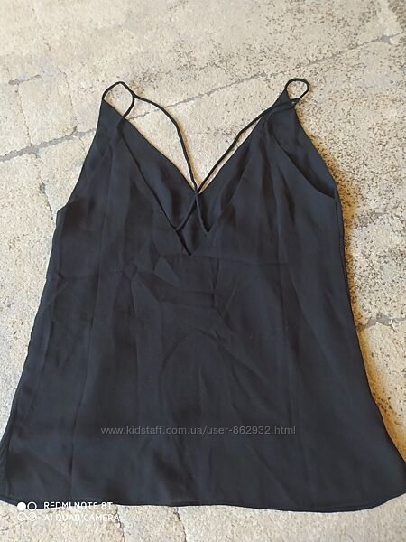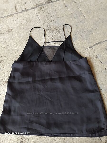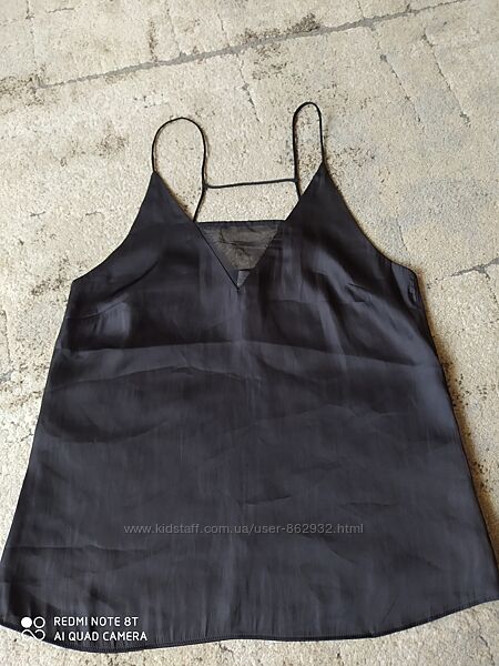 Фото 8- черная майка топ в бельевой стиле от Н&М размер 34/XS. На цельнокроеной подкладке спереди и сзади.